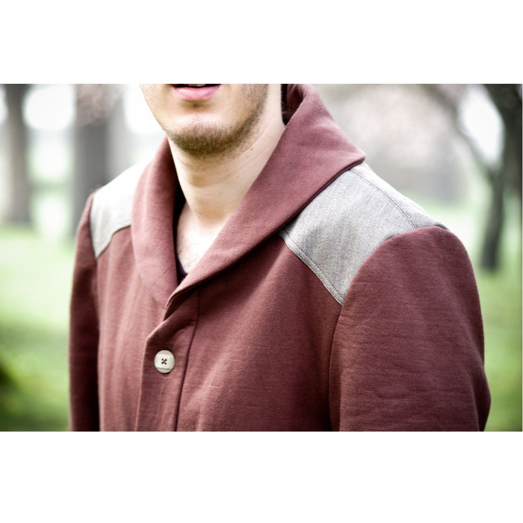 For men who would like to stay cozy but look stylish - this shawl collar cardigan can look trendy or classic depending on the fabric choice. The sweater is slim fitting with long cuffed sleeves and a flattering fold-over shawl style collar.
