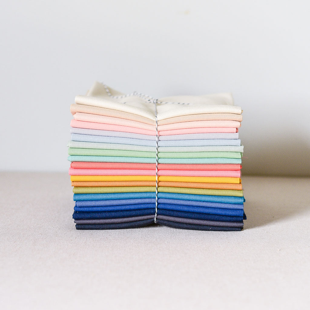 This twenty piece KONA Solids Set curated by Karyn is inspired by the colours of the original Double Time Quilts from Handmade Getaway and is available in fat quarters or half metres.