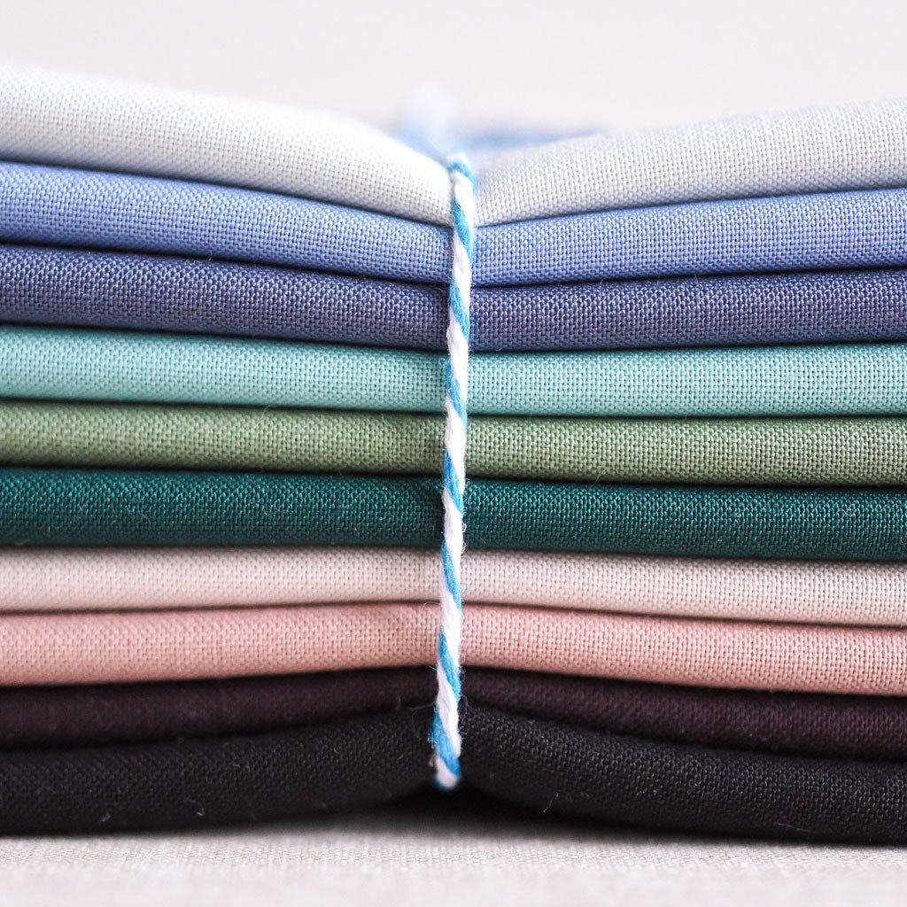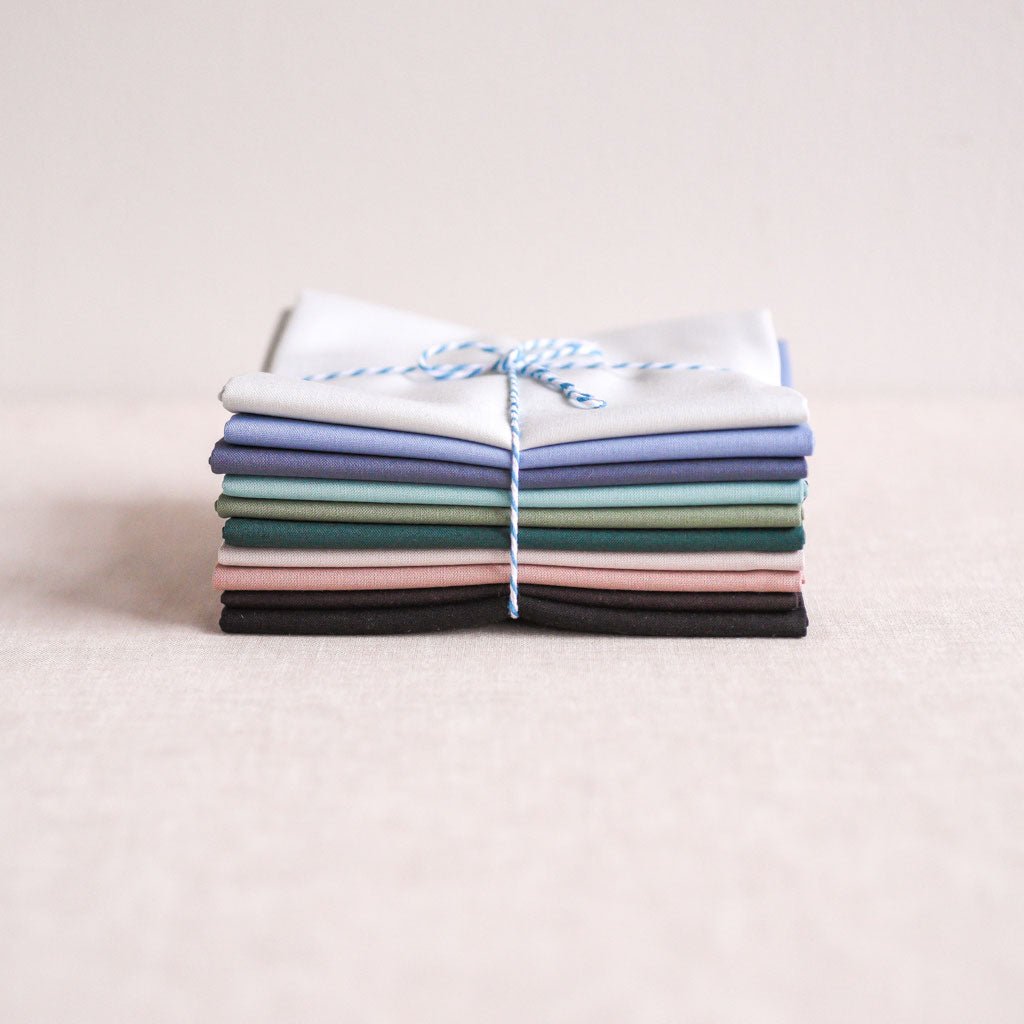 This ten piece KONA Solids Set curated by team workroom is available in fat quarters or half metres.