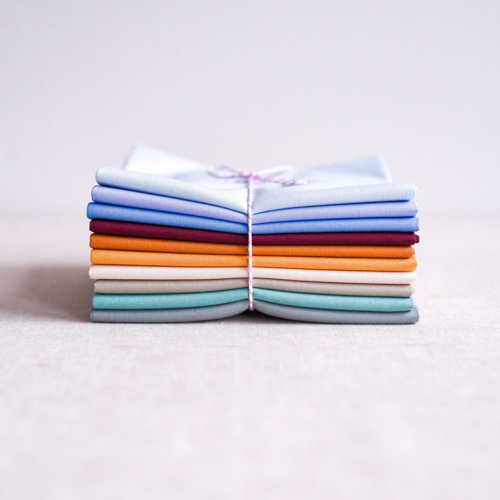 This ten piece KONA Solids Set curated by Kate is available in fat quarters or half metres.