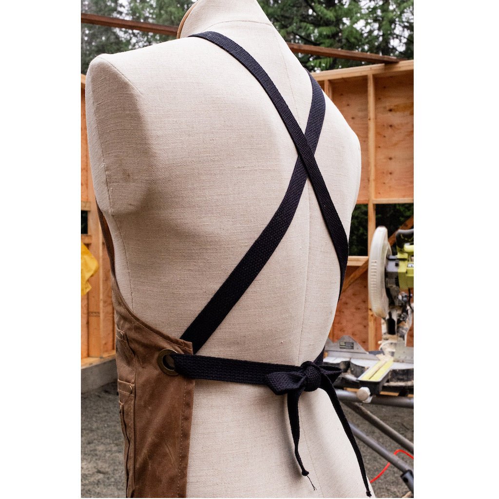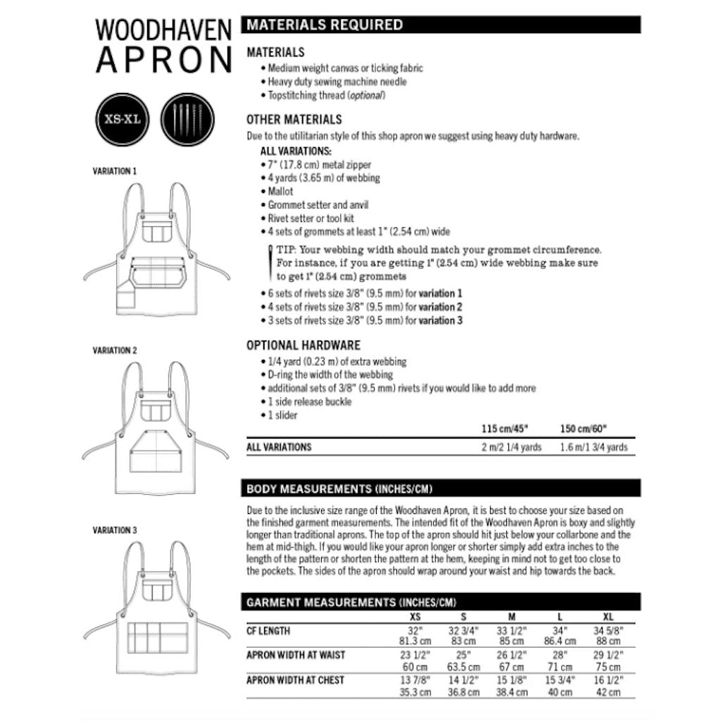 An essential workwear accessory for the workshop or kitchen. Make this practical apron in heavy canvas, rugged denim or sturdy linen with coordinating webbing and sturdy rivets for long lasting protection.