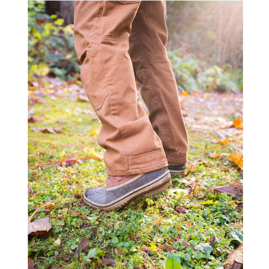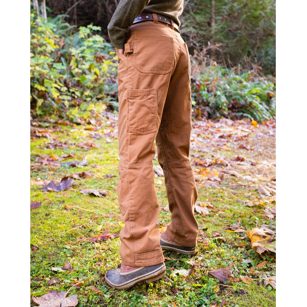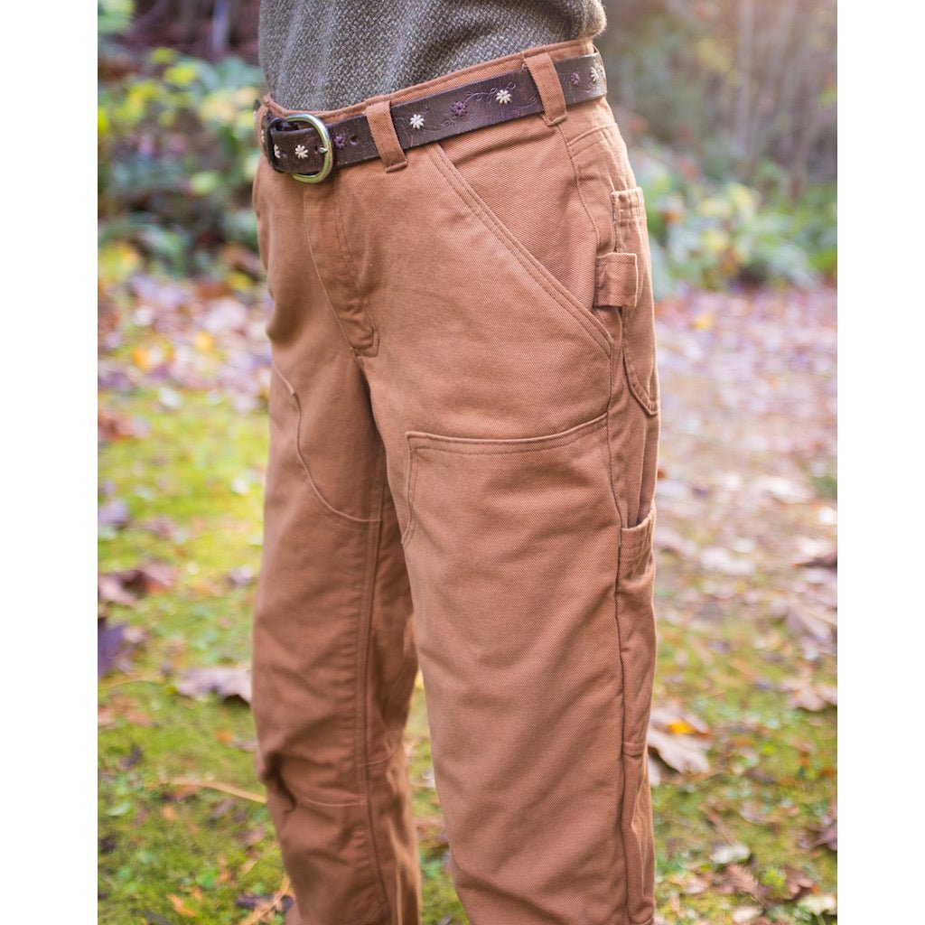 These work pants are designed for comfort and true function. The roomy legs, knee darts, close-fitting gusset, and a raised center back allow for an extreme range of movement. They can be sewn with a myriad of useful pockets and also include the option to add a hammer loop, reinforced knees, and a reinforced hem.