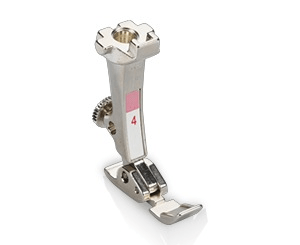 Zipper foot #4 makes quick work of inserting zippers neatly and precisely. Its narrow, centrally placed toe allows Zipper foot #4 to get very close to the zipper coils, enabling it to attach the fabric securely. The result is a perfectly inserted zipper with a consistent stitch pattern.