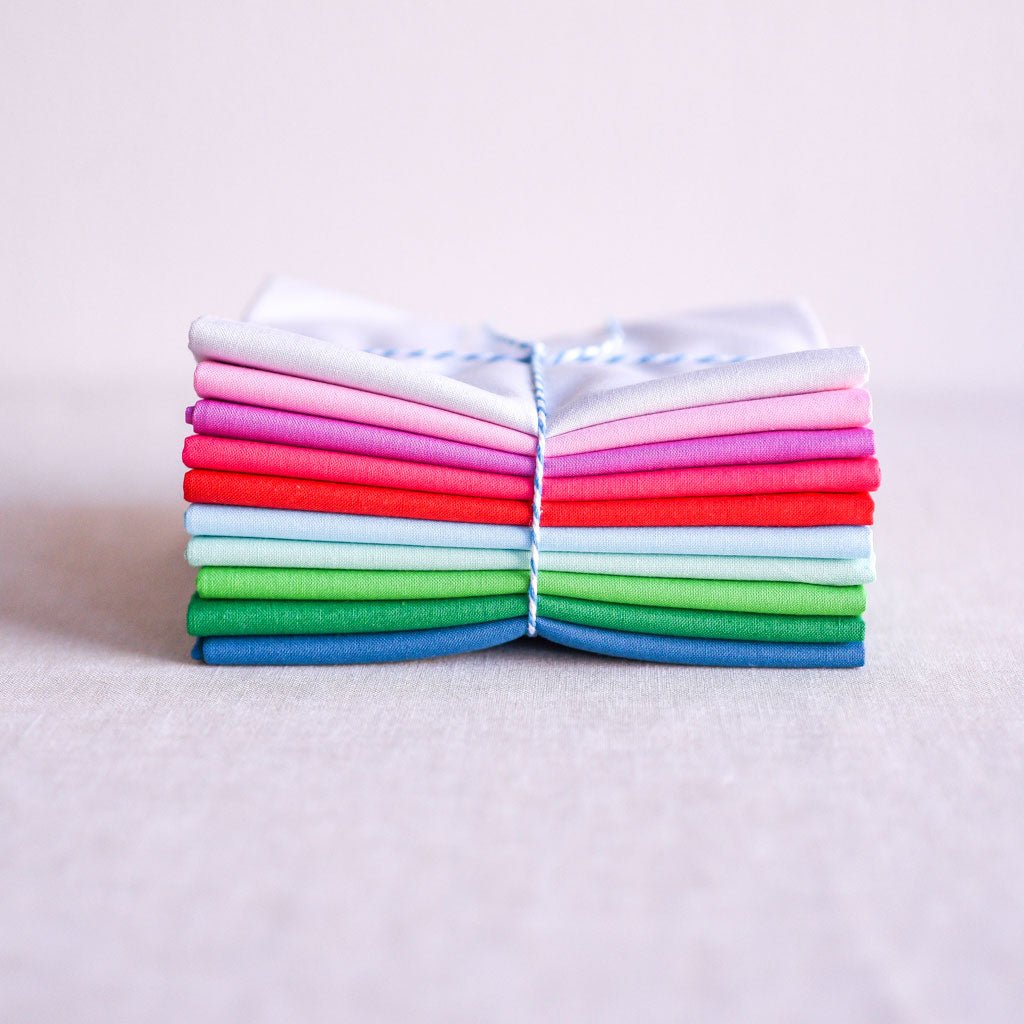 This ten piece KONA Solids Set curated by Carolanne is available in fat quarters or half metres: