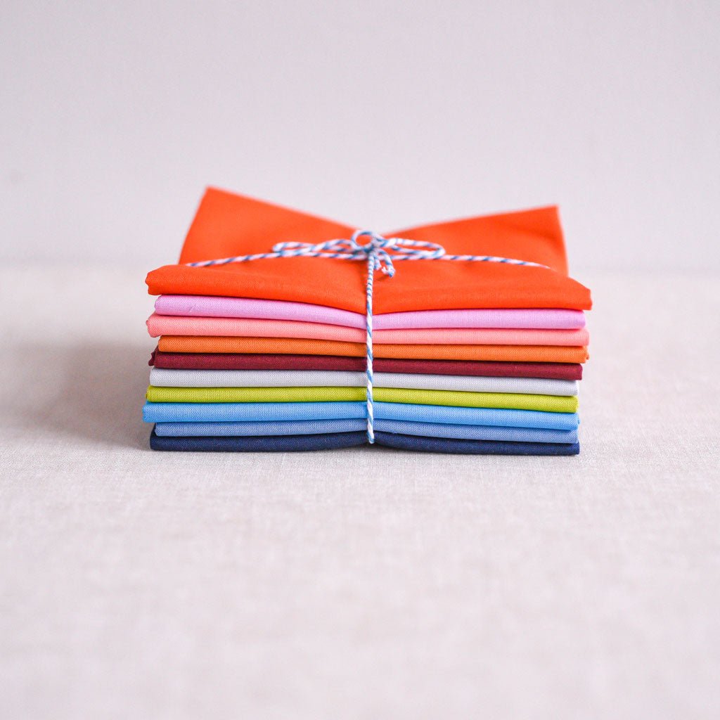 This ten piece KONA Solids Set curated by Team Workroom is available in fat quarters or half metres.